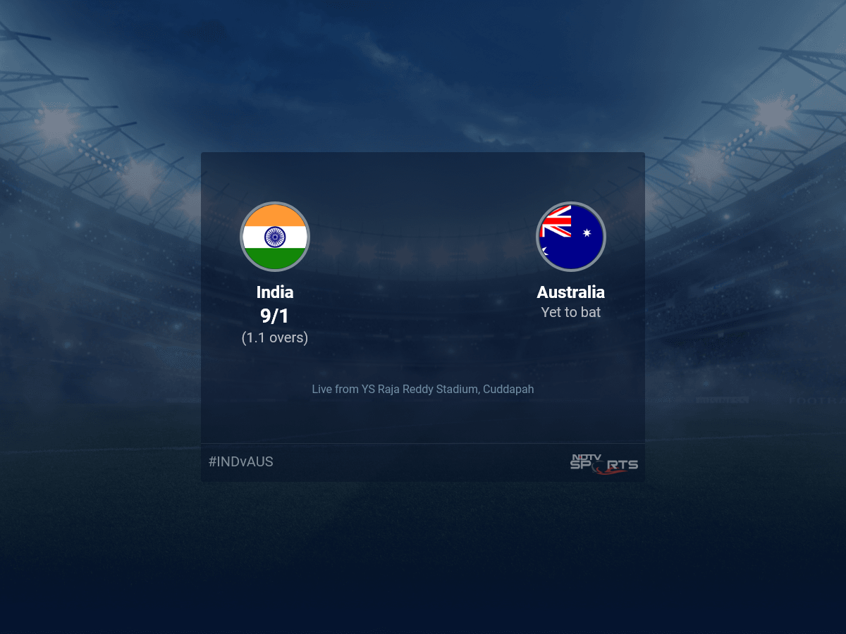 Follow the India vs Australia, 2023 live cricket score on Sports.NDTV.com. After 1.1 overs, India are 9/1. Get live score, ball by ball commentary and much more. Keep track of India vs Australia, 2023 today match between India and Australia. Everything related to India and Australia match will be available on Sports.NDTV.com. Stay updated with India vs Australia live score. Do check for India vs Australia scorecard. You can get scorecard updates, match related facts. Get quick live updates with ads, Sports.NDTV.com, which is the perfect destination for live cricket score.