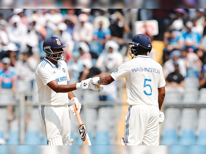 What a moment for Ravindra Jadeja has been completed his 10-wicket haul in the third Test against New Zealand. Ajaz Patel becomes his latest victim as New Zealand get bundled out for 174. India now need 147 runs to win this Test match. Apart from Jadeja, Ravichandran Ashwin took three wickets while Akash Deep and Washington Sundar took one wicket each. For the visitors, Will Young was the top-scorer with 51 runs.