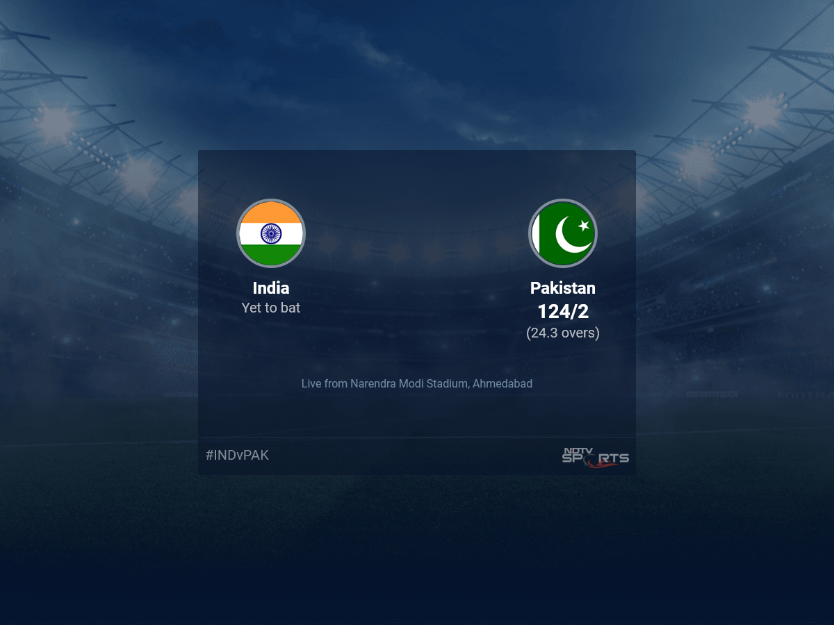 A dedicated team of experts bring you live score, live cricket score, live match update on Sports.NDTV.com. After 24.3 overs, Pakistan are 124/2. The live updates of India vs Pakistan scorecard is also available. It is the perfect platform to follow your favourite teams in ICC Cricket World Cup 2023. Keep a track on your favourite batsmen and bowlers through ICC Cricket World Cup 2023 today match, ball by ball commentary, India vs Pakistan, India vs Pakistan live score, India vs Pakistan scorecard. Follow the excitement of the ICC Cricket World Cup 2023 on Sports.NDTV.com as you can follow live match updates and live cricket score through our platform.